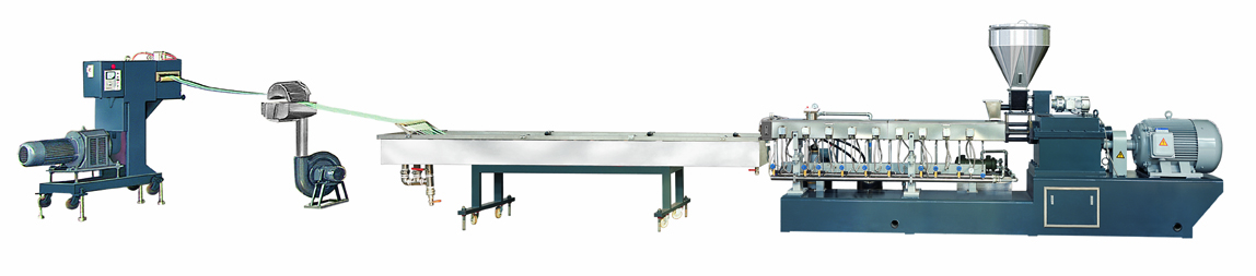 擠出口模板、冷卻水槽、風(fēng)干機(jī)、冷切粒機(jī)、振動(dòng)篩和后續(xù)料倉(cāng)包裝系統(tǒng)等。